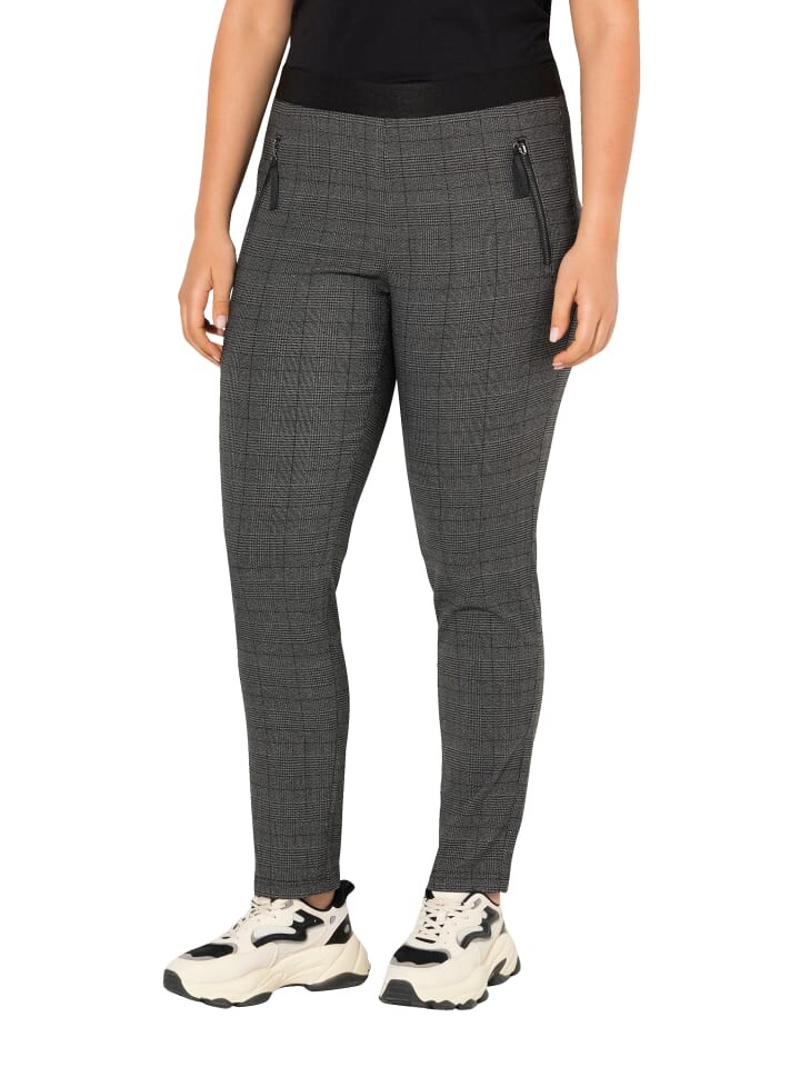 Брюки в клетку, удобного кроя, с простым эластичным поясом и карманами на молнии.