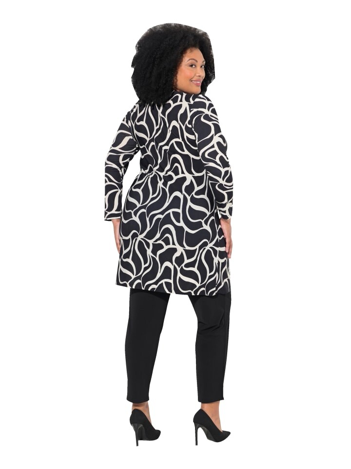 Длинная рубашка А-силуэта из очень гладкого трикотажа с принтом по всей поверхности. Круглый вырез, длинные рукава. Удобная ширина нижнего края.