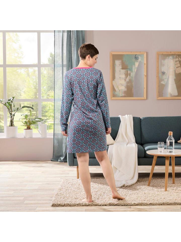 REDBEST женская ночная рубашка из одинарного джерси. Для чистого релакса. Ночное белье с круглым вырезом украшено по всей поверхности красивым узором в виде мандалы, который придает ему художественный и духовный оттенок. Приятная, приятная для кожи и дышащая вещь, которая приглашает вас мечтать.