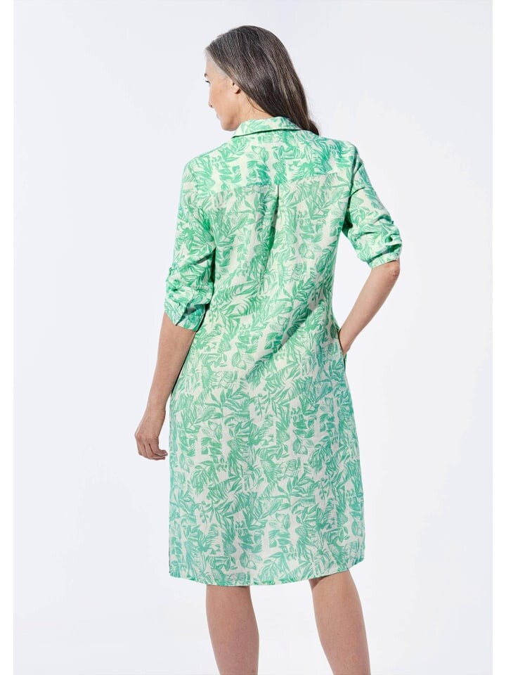 Льняное платье для идеального летнего образа. Повседневный воротник рубашки, планка на пуговицах во всю длину, нагрудный карман и практичные карманы в боковых швах. Рукава длиной 3/4 можно подвернуть благодаря манжетам на пуговицах и планке. Коробчатая складка на кокетке сзади обеспечивает удобную дополнительную ширину, боковые разрезы и длина, закрывающая колени, обеспечивают максимальную свободу движений. Платье из чистого льна с принтом по всей поверхности и однотонным рисунком оказывает охлаждающий эффект и поэтому особенно удобно носить в жаркие летние дни. Размер в длину около 108 см. 46, размер около 102 см. 23.