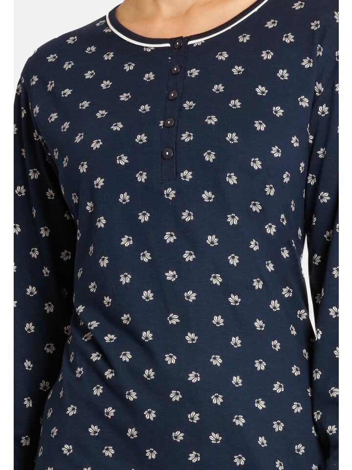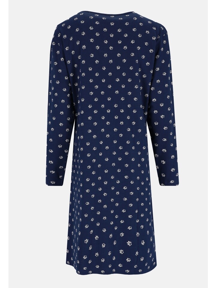 С этой ночной рубашкой ничто не помешает прекрасным снам, потому что благодаря идеальному сочетанию материалов с суперчесаным хлопком ночная рубашка становится очень удобной. Имеет красивый круглый вырез с планкой на пуговицах и контрастной окантовкой, а также неподвластный времени принт по всей поверхности.