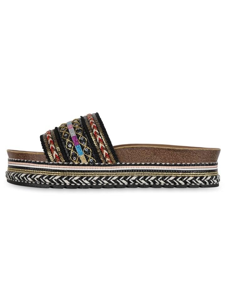 С моделью обуви: мюли – нет ничего лучшего. Обувь очень модная и прекрасно сочетается со многими нарядами. Женская обувь – популярный выбор по сезону: весна, лето. Обувь без подкладки. Стиль обуви: модный и привлекает внимание. Кроме того, практичный тип застежки: отсутствие застежки позволяет легко надевать и снимать. Еще одна изюминка – детали обуви: блестки, пайетки, этнический вид. За этими сандалиями легко ухаживать, они долговечны благодаря тканевому верху. Внутренний материал: синтетическая кожа обеспечивает удобную посадку, стелька: синтетическая кожа обеспечивает комфорт при ходьбе, а подошва поддерживает каждый шаг. Благодаря форме каблука: платформа и высоте каблука: 3,5 см, а также носку: открытый спереди, эти туфли прекрасно сочетаются с любым образом и случаем.