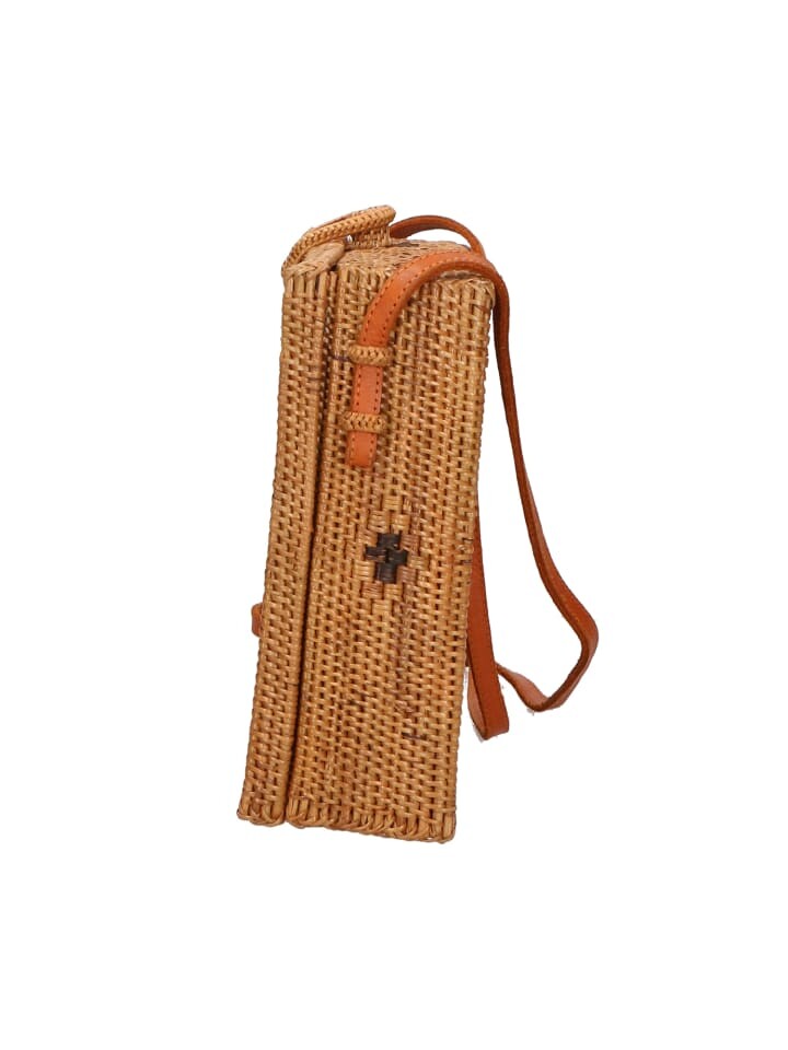Квадратная сумка на плечо из ротанга ручной работы с кожаной застежкой. Итальянское изделие ручной работы. Сделано в Италии. 20X20X7