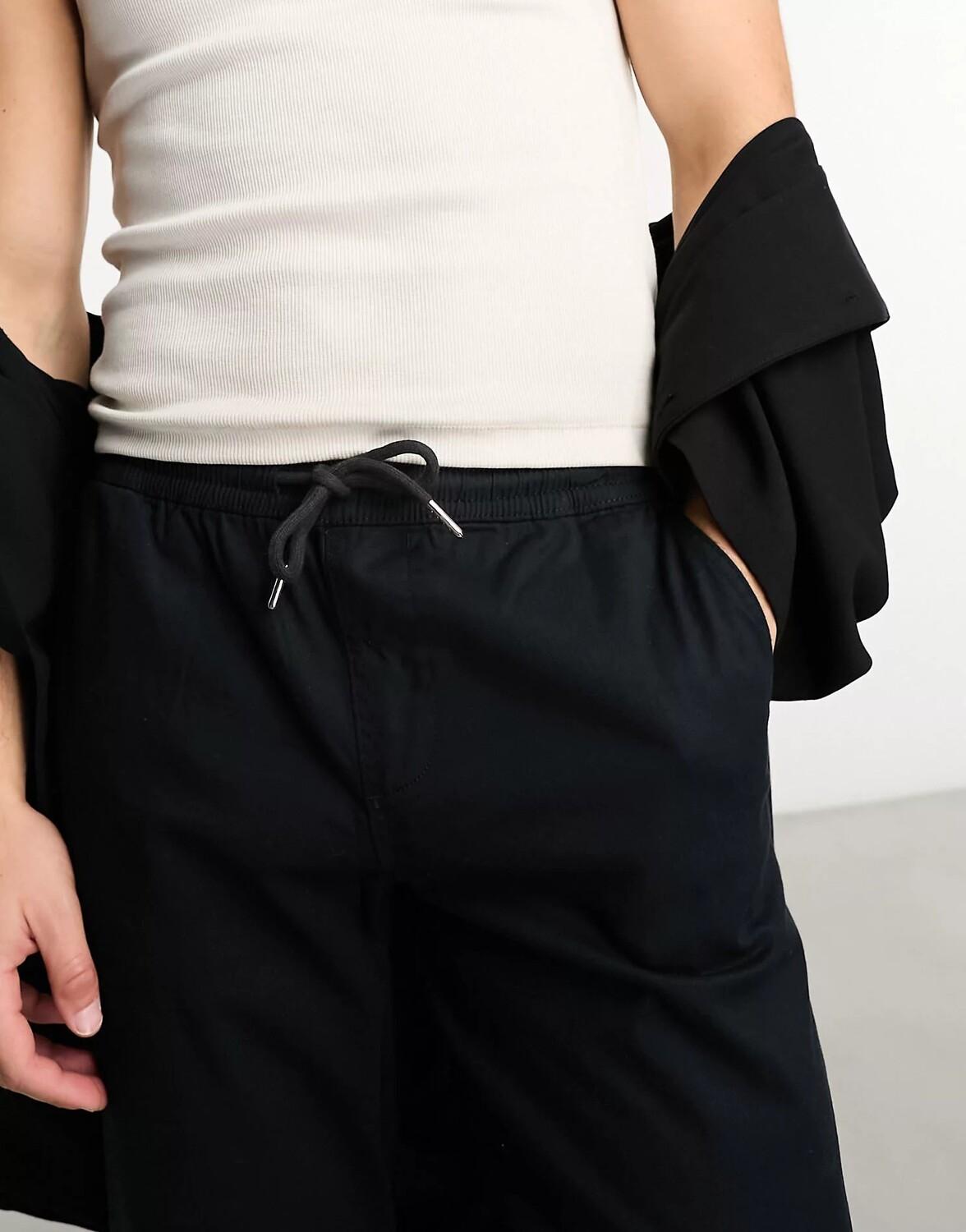 Дизайнерские брюки с удобным поясом с завязками однотонного цвета сшиты из эластичной однотонной ткани.