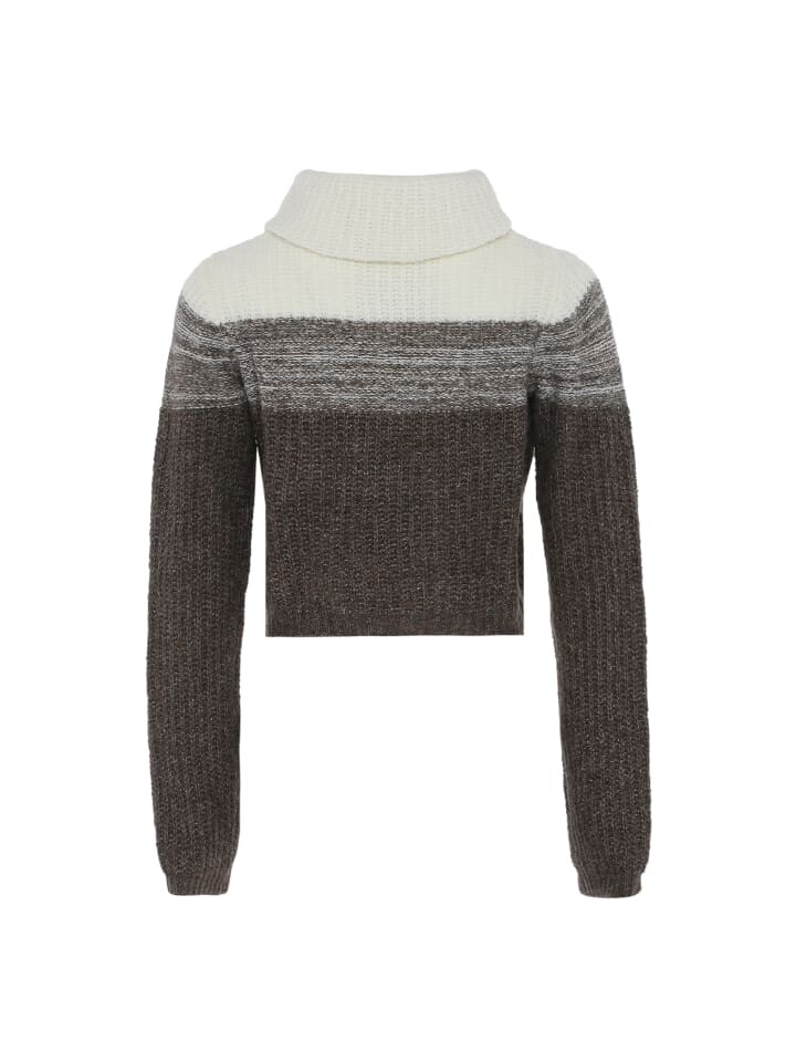 Украсьте свой зимний гардероб этим стильным вязаным свитером. Модный укороченный крой и шикарный высокий воротник, также известный как водолазка, делают эту модель одновременно уютной и модной. Ребристая текстура на манжетах, подоле и шее придает нотку элегантности. Благодаря уникальному узору на груди этот свитер легко сочетает в себе различные текстуры вязки, создавая современный вид.
