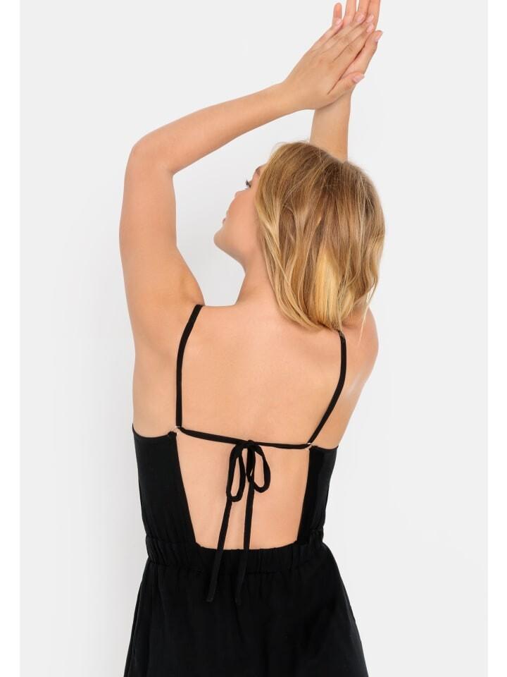 Длинный комбинезон LSCN от Lascana. Круглый вырез. Различные бретели-спагетти. Глубокий вырез сзади. Широкий эластичный пояс. Боковые карманы. Изготовлен из крепированной вискозы.
