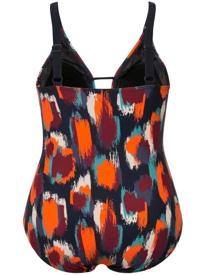 Купальник с мягкими чашками и цветным точечным узором. Вырез в форме сердечка с металлической застежкой спереди и декоративными лентами сзади. Поддерживающая лента под грудью, подкладка спереди. Изготовлено из переработанного полиамида.