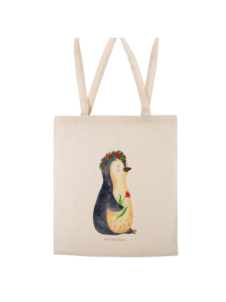 Сумка для переноски Mr & Mrs Panda Pinguin Blumen ohne Spruch, кремовый