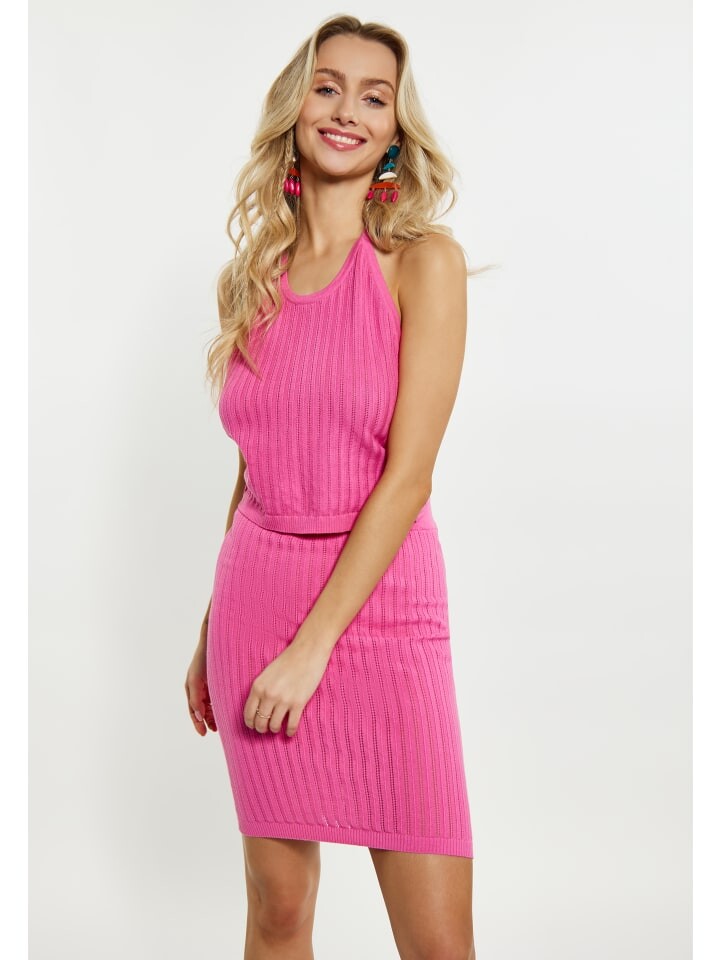 Представляем вязаный топ с открытой спиной. Этот укороченный топ с воротником-бретелькой идеально подходит для лета. Благодаря ребристой текстуре и силуэту без рукавов, оно повторяет контуры тела и идеально сидит по фигуре. Закругленный вырез горловины переходит в ремешок, который застегивается на шее. Идеально подходит для тех, кто ищет летний образ.