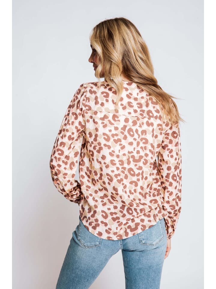 Соблазнительная женская блузка нежного розового цвета с леопардовым принтом