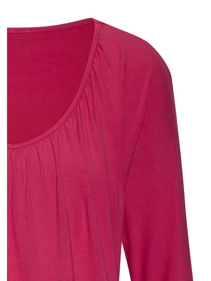 Рубашка с рукавом 3/4 от Lascana. Круглый вырез горловины с рюшами. Рукава длиной 3/4. Подол рубашки на резинке. Свободная посадка. Мягкий, струящийся трикотаж с вискозой.