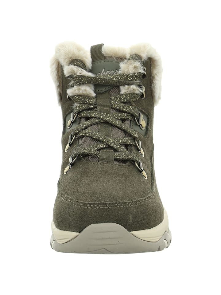 Женские водонепроницаемые ботильоны Skechers Trego на теплой подкладке, на шнуровке зеленого цвета.