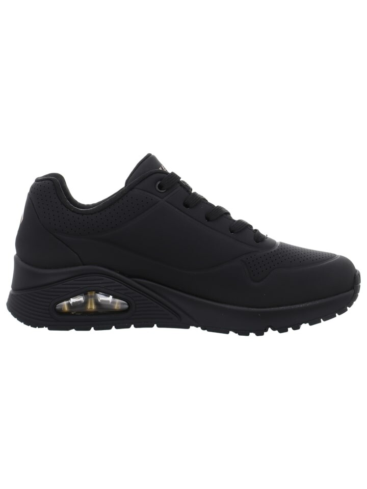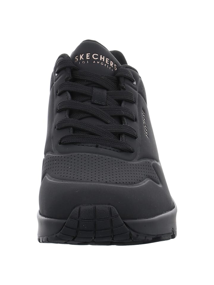 Черные женские кроссовки UNO-Stand on Air от Skechers – это невероятно уютно и элегантно! Обувь имеет модный вид и впечатляет своей легкостью и комфортом. Особая изюминка – высокая подошва на танкетке. Стелька из пены с эффектом памяти с воздушным охлаждением обеспечивает оптимальную адаптацию к ноге. Подошва на танкетке из пеноматериала обещает несравненный комфорт при ходьбе, превращая ее в прогулку по облакам. Дамы, которым нужен надежный спутник в спортзале или в городе, не ошибутся с кроссовками UNO-Stand on Air от Skechers!