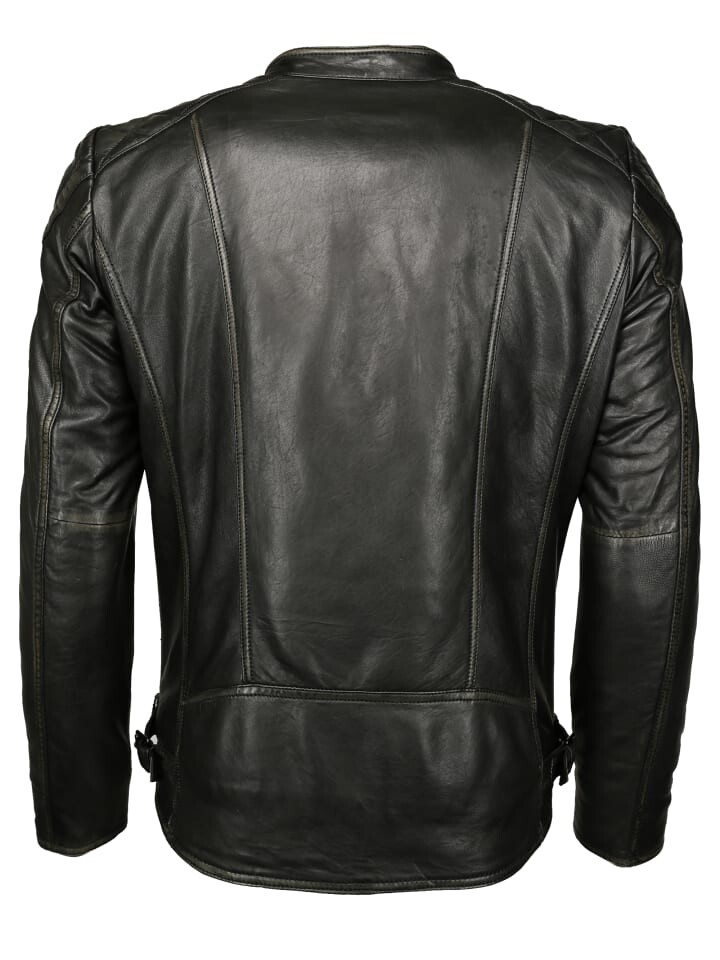 Современная кожаная мужская куртка от модного бренда Mustang. Куртка имеет красивую строчку в области плеч и предплечий. Он оснащен двумя боковыми карманами на молнии и двумя внутренними карманами, один на кнопке, другой на молнии. Благодаря прямому крою, короткому воротнику-стойке и регулируемым пряжкам по бокам ее удобно носить - с частично клетчатой внутренней подкладкой.