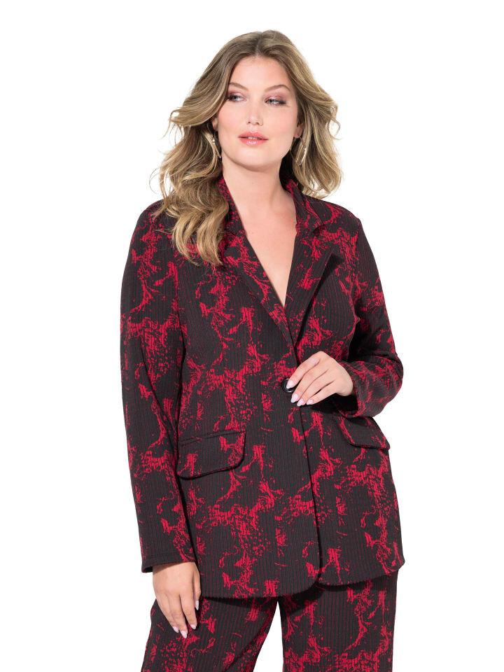 Блейзер из джерси, слегка приталенного кроя, с ребристой структурой и принтом по всей поверхности. Классический внешний вид с воротником с лацканами, застежкой на пуговицы и карманами с клапанами. Длинный рукав.