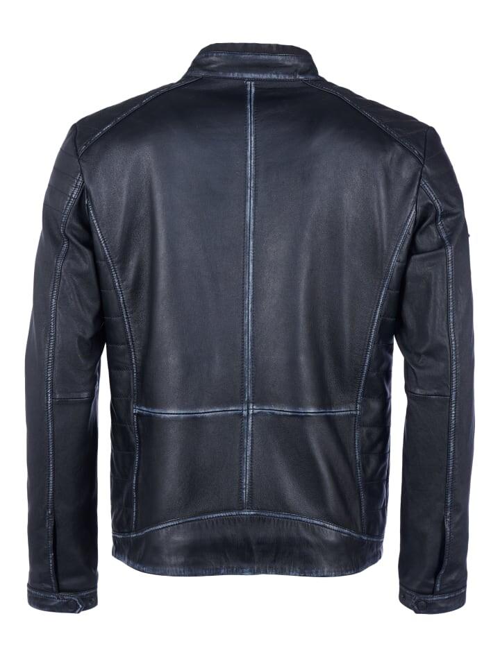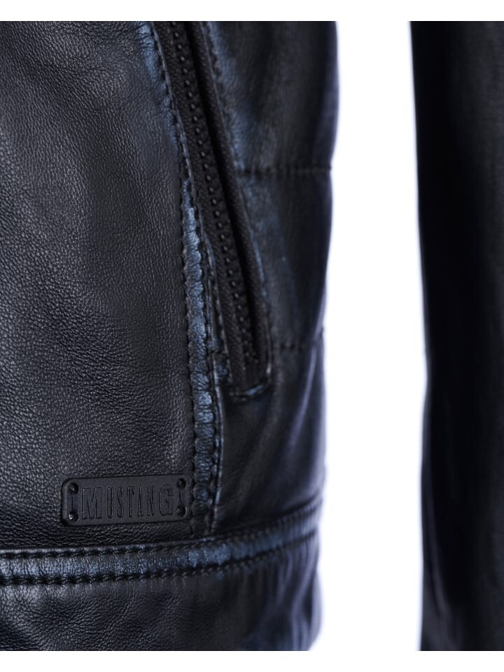 - Кожаная куртка с коротким воротником-стойкой от бренда Mustang