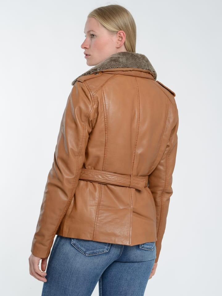 Откройте для себя неподвластную времени элегантность этой женской кожаной куртки. Изготовленный из высококачественной кожи, он придаст любому наряду нотку изысканности. Женственный крой и тщательная обработка обеспечивают оптимальный комфорт и идеальную посадку. Универсальная куртка незаменима для женщин, которые ценят качество и стиль
