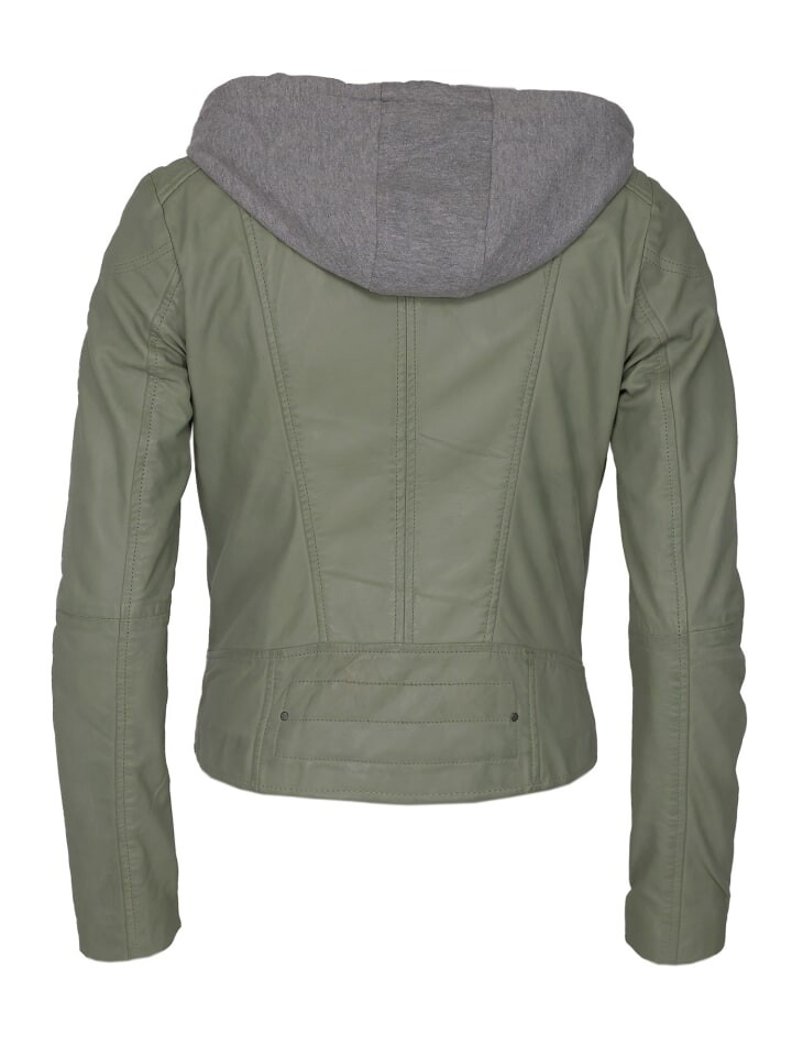 Откройте для себя лучшее из обоих миров с этой женской кожаной курткой со съемной трикотажной вставкой с капюшоном. Эта куртка, изготовленная из высококачественной кожи, придает элегантный и стильный вид. Вставка из джерси с капюшоном обеспечивает дополнительный комфорт и универсальность, что делает ее подходящей как для повседневного, так и для более нарядного образа. Женственный крой и тщательная обработка делают эту куртку незаменимой для женщин, следящих за модой.
