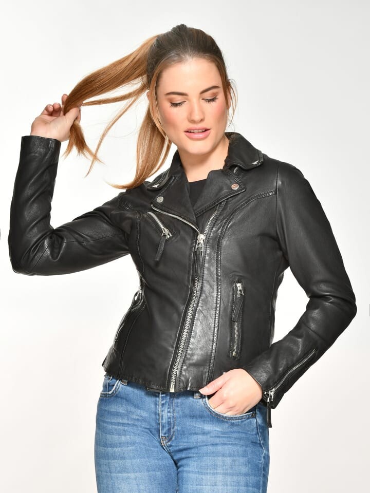 Топовая актуальная кожаная куртка привлекательного вида от бренда MAZE. Кожаная куртка с повседневными карманами на молнии и стильными декоративными швами. Внутренний карман и нагрудный карман на молнии обеспечивают достаточно места. Он имеет слегка приталенный крой и удобен в ношении благодаря внутренней подкладке. Посадку также можно регулировать с помощью молний на концах рукавов. Благодаря широкому воротнику рубашки вы гарантированно будете выглядеть хорошо в любой ситуации. Это можно зафиксировать кнопками.