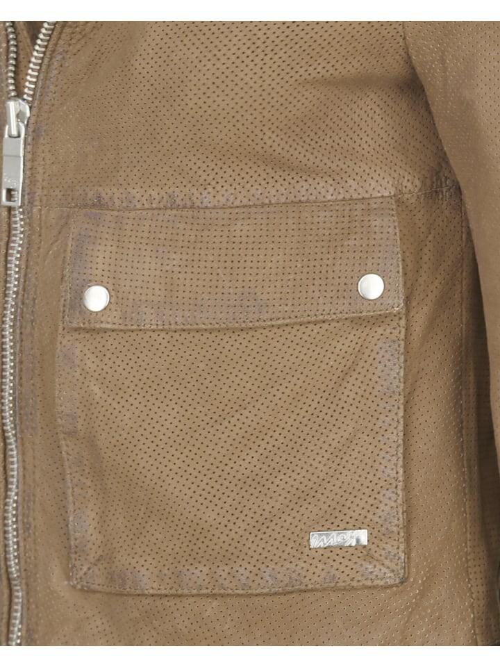 Современная женская кожаная куртка от модного бренда Maze. Куртка имеет два боковых кармана на кнопках, нижний нагрудный карман на молнии с правой стороны и внутренний карман. Застегивается на прямую молнию и две кнопки на коротком воротнике-стойке. Удобная внутренняя подкладка дополняет высококачественную кожаную куртку из овечьей кожи. Красивый дизайн благодаря перфорации по всей куртке.