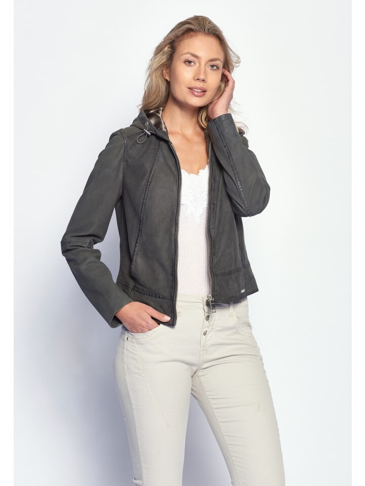 Современная женская кожаная куртка от модного бренда Maze. Куртка имеет два боковых кармана на кнопках и внутренний карман. Куртка застегивается на прямую молнию, а также имеет красивый капюшон на резинке с обеих сторон. Тонкая внутренняя подкладка дополняет высококачественную кожаную куртку. Кожаная куртка проста и украшена красивой декоративной строчкой.