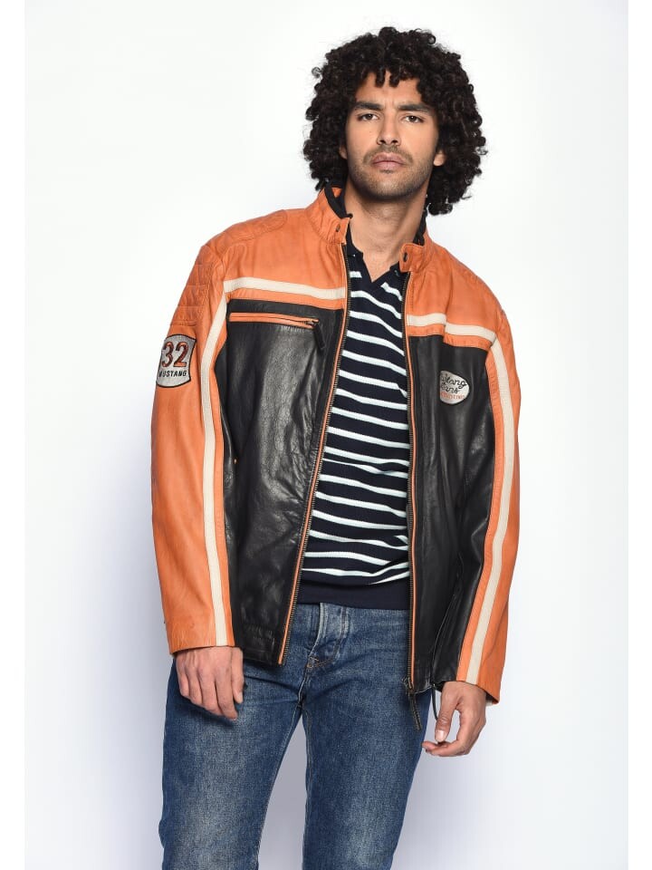 Кожаная куртка Mustang Gunner, цвет schwarz orange