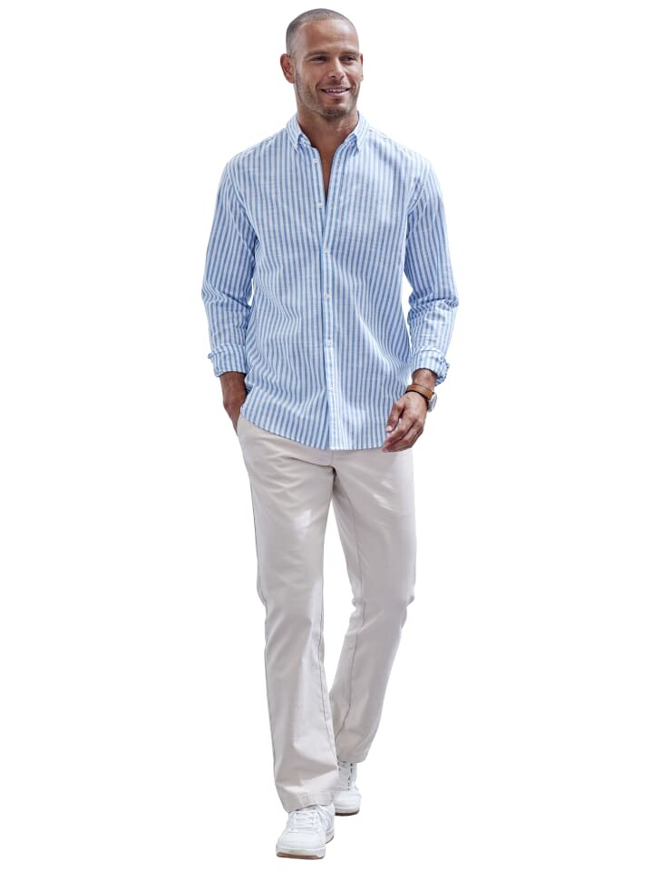 Полосатая рубашка с длинными рукавами от John Devin. С модным воротником на пуговицах. Спинка с кокеткой и подвижной складкой для комфорта. Для офиса и отдыха. Комфортный хлопок.