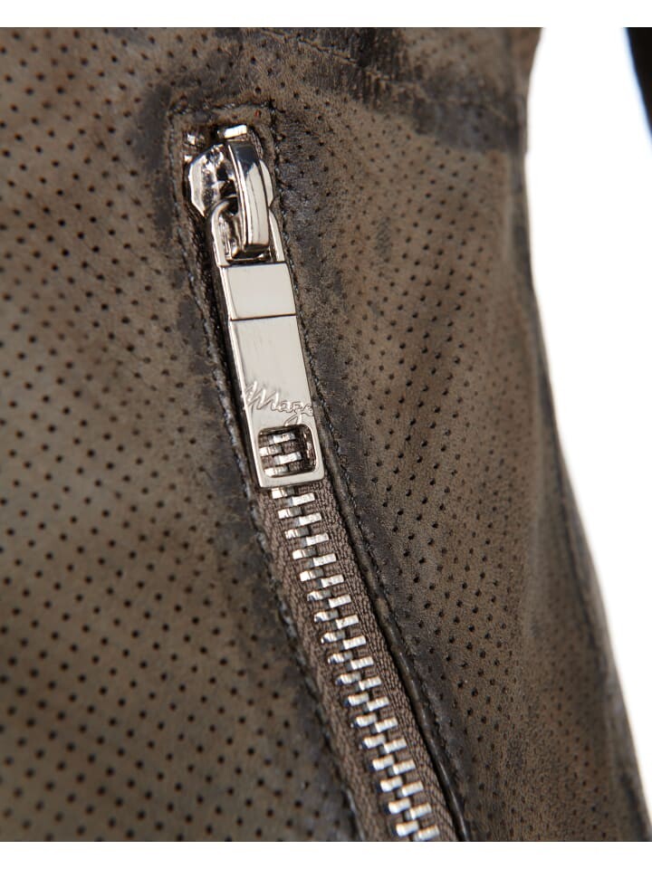 Современная женская кожаная куртка от модного бренда Maze. Куртка имеет два боковых кармана на молнии и внутренний карман. Застегивается на асимметричную молнию до короткого воротника-стойки. Удобная внутренняя подкладка дополняет эту куртку из высококачественной кожи ягненка. Красивый дизайн благодаря перфорации по всей куртке и трикотажной вставке на рукавах.
