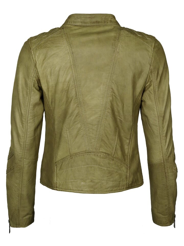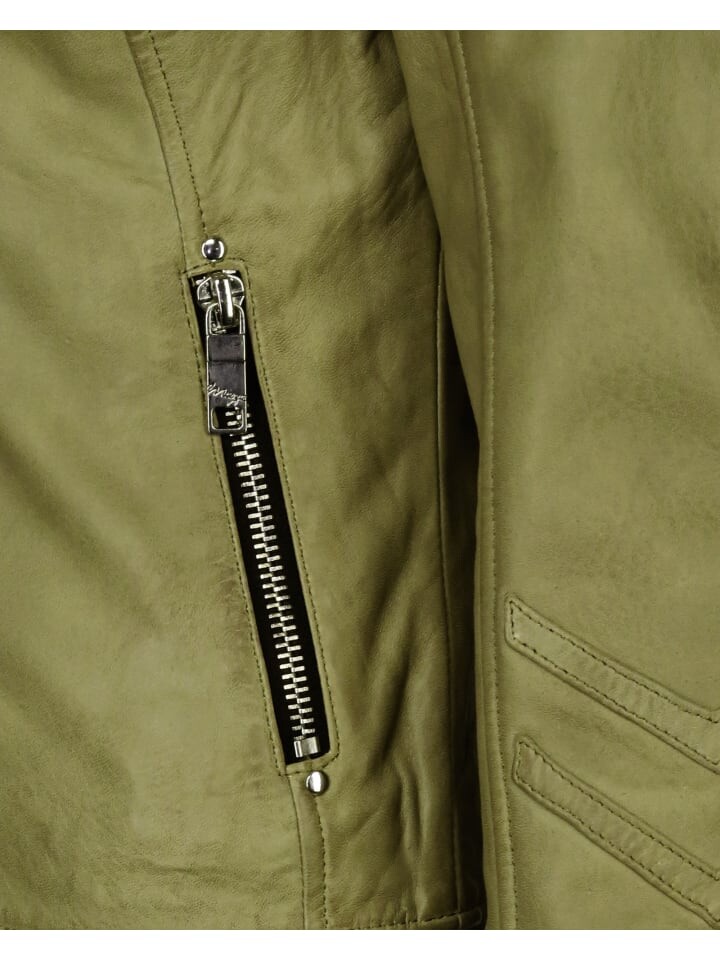Модная женская кожаная куртка от бренда Maze. Искусно пришитые боковые карманы на молнии и воротник-стойка с застежкой придают этой куртке особенный вид. Манжеты на рукавах с застежкой-молнией также выглядят стильно. Посадка индивидуальная, но удобная. Эта куртка предлагает множество возможных комбинаций.
