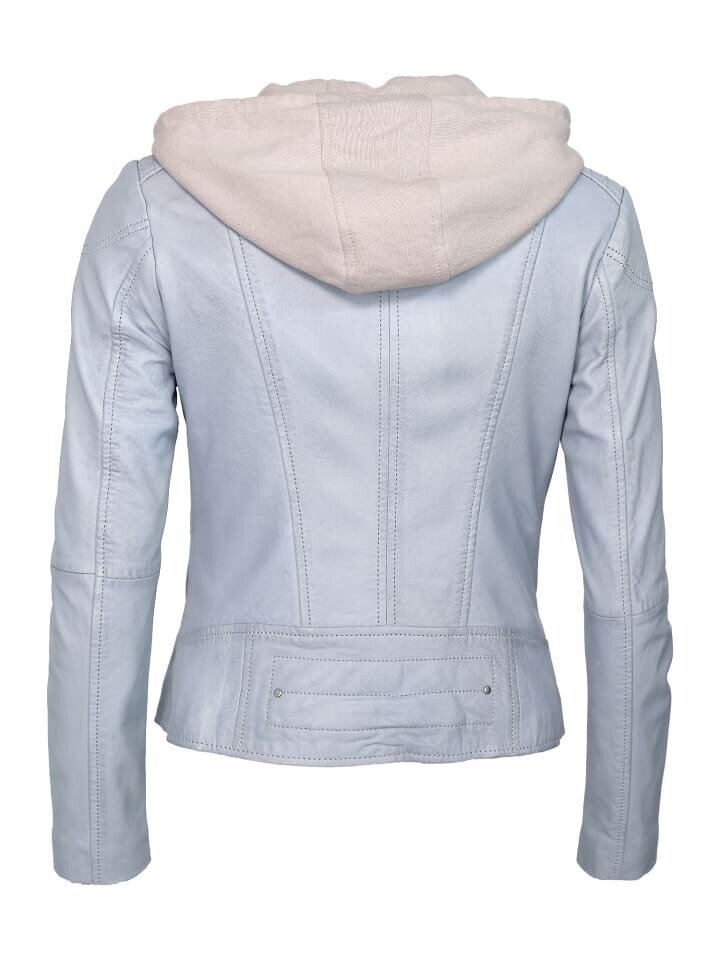 Погрузитесь в идеальное сочетание стиля и комфорта с этой женской кожаной курткой со съемной трикотажной вставкой с капюшоном. Изготовленное из высококачественной кожи, оно придаст вашему образу нотку роскоши и изысканности. Съемная трикотажная вставка с капюшоном обеспечивает гибкость, позволяя адаптировать внешний вид в зависимости от погоды и случая. Независимо от того, носите ли вы куртку со вставками или без, она всегда будет выглядеть современно и изысканно. Эта кожаная куртка с неподвластным времени дизайном и тщательной обработкой является незаменимым аксессуаром для следящих за модой женщин.