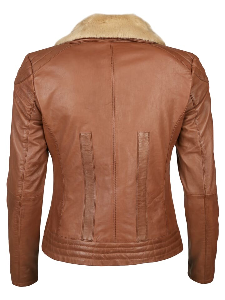 Модная женская кожаная куртка Maze с красивым меховым воротником. Благодаря облегающему крою эта стильная куртка предлагает множество возможных комбинаций.