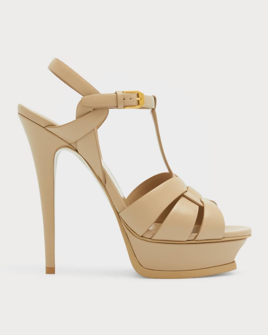 Кожаные сандалии на платформе с Т-образным ремешком Tribute Saint Laurent