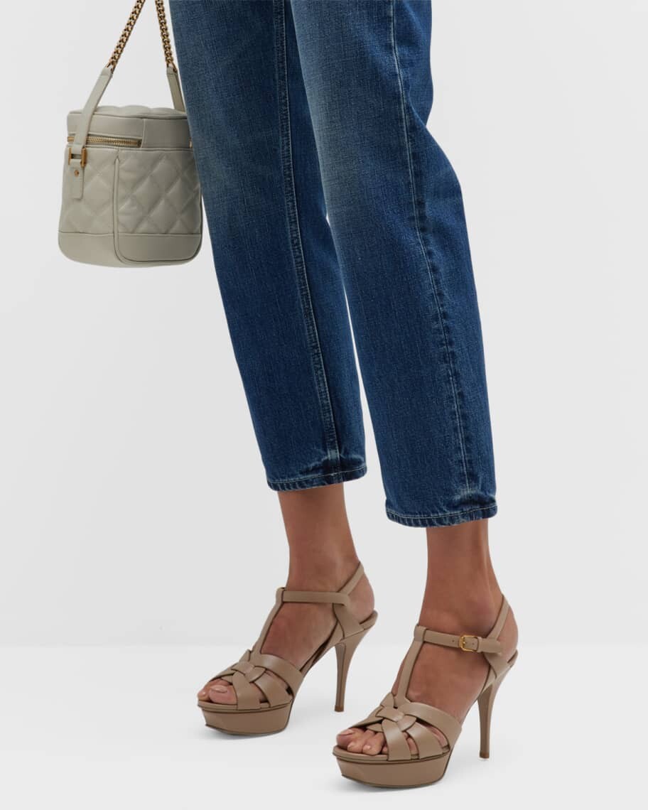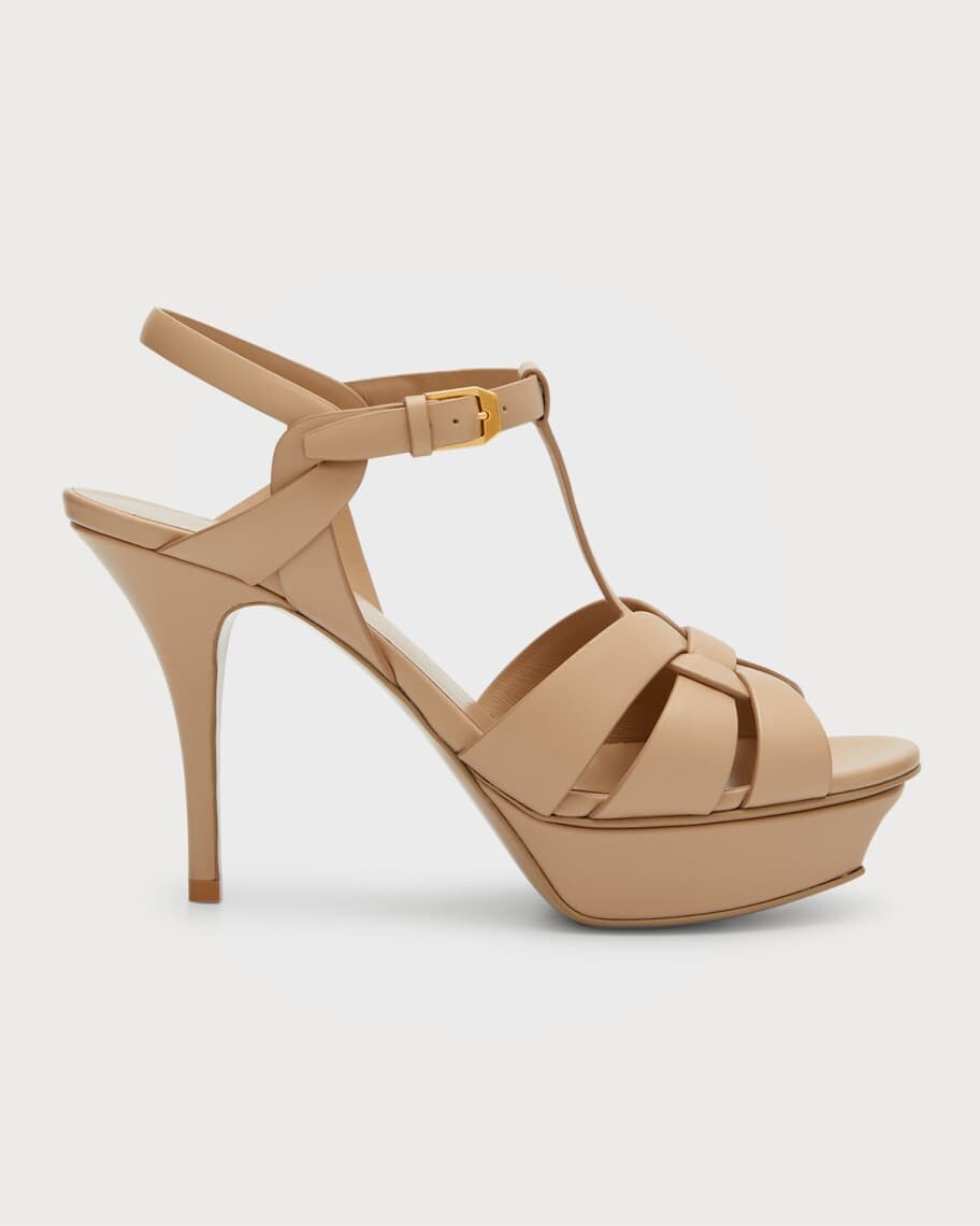 Кожаные сандалии на платформе с Т-образным ремешком Tribute Saint Laurent