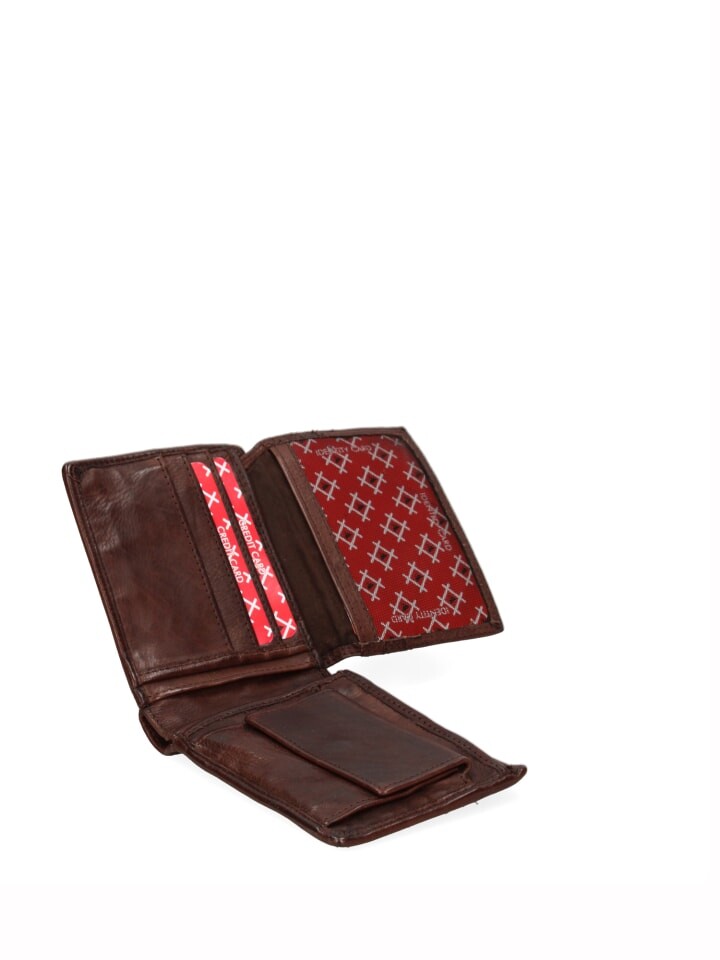 как мужской кошелек без закрытия. Внутренние карманы для визитниц, держателей для купюр и монет. отсутствуют внешние карманы. отсутствует плечевой ремень. отсутствует ручка. внутренний отсек. Внешний материал. Внутренняя подкладка из натуральной кожи. Размеры: 12х9х2 см. Модное изделие 12x9x2 см