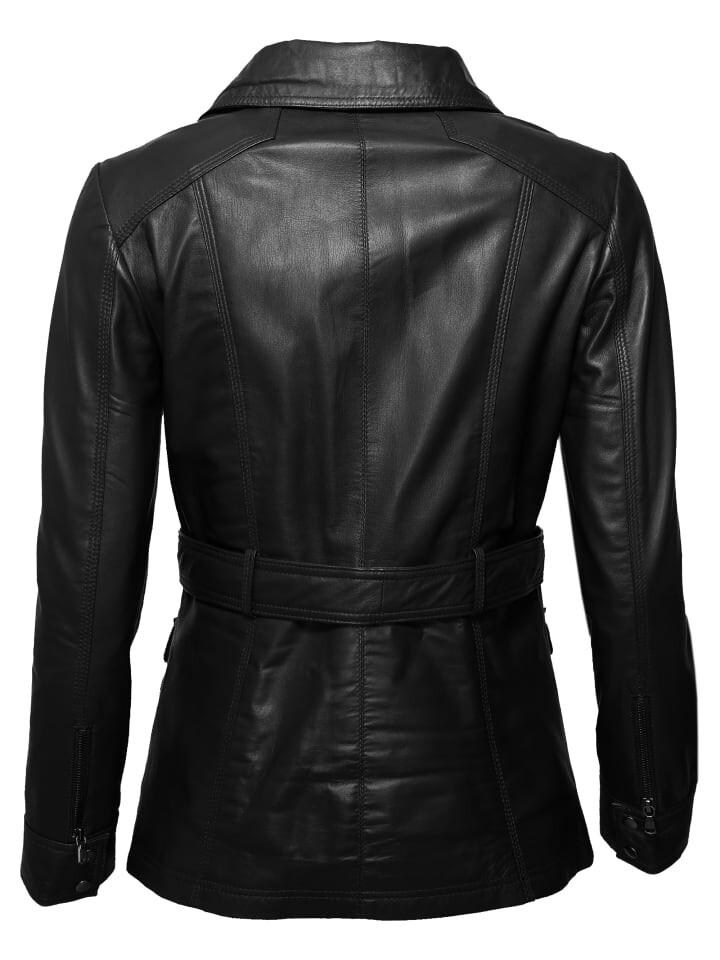 Модная кожаная куртка из ягненка от JCC. Короткое пальто застегивается на потайную молнию и имеет накладные карманы на кнопках. Декоративные швы на плечах и застежка на пояс на талии создают нежные акценты. Куртка слегка скроена и предлагает множество возможных комбинаций благодаря женственному крою.