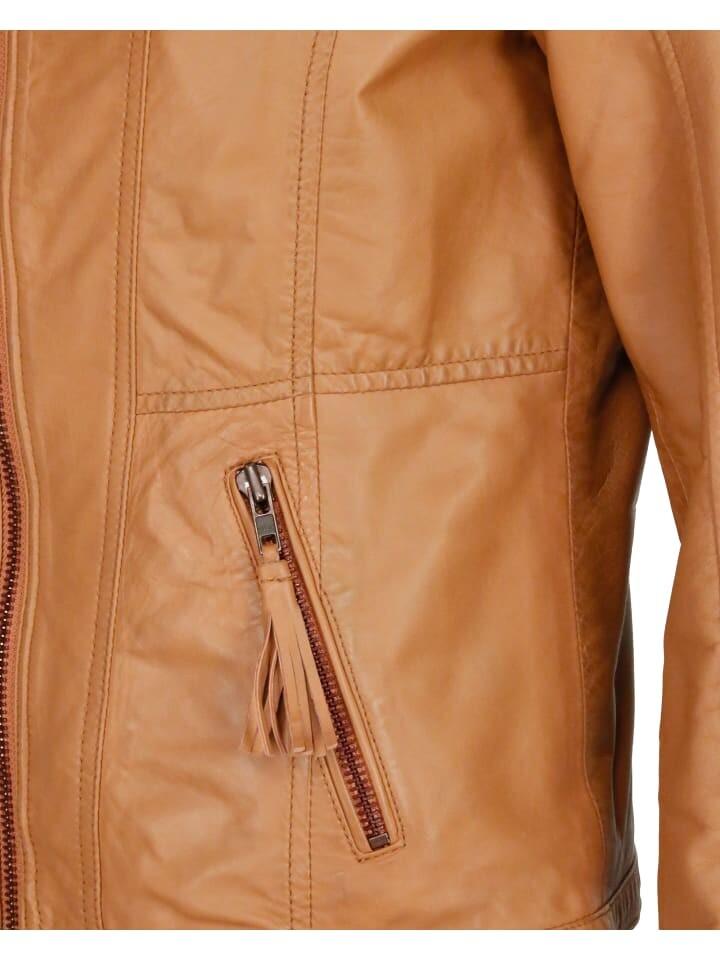Боковые карманы на молнии искусно прошиты из мягкой овечьей кожи. Застегивается на прямую молнию и кнопку на воротнике-стойке. По низу и рукавам также имеется встроенная проволока, позволяющая дополнительно регулировать посадку. Благодаря многочисленным мелким и визуально привлекательным деталям это красивая куртка для весны и лета.
