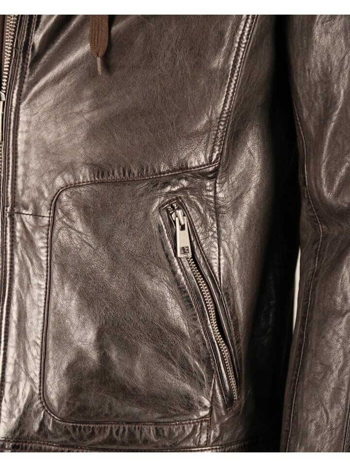 Куртка имеет съемный капюшон, который можно снять с помощью молнии, включая всю вставку. Также имеется два встроенных боковых кармана и два кармана на молнии на уровне ключиц. Визуальные акценты, такие как тонкая строчка на плечах и изящные декоративные швы, придают этой куртке необыкновенный характер. Мягкая кожа со слегка приталенным кроем обеспечивает оптимальную посадку и удобную посадку.