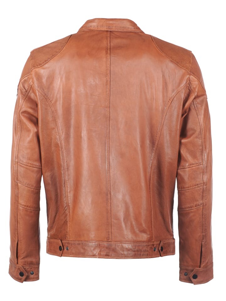 Кожаная куртка из мягкой овчины имеет два нагрудных кармана на молнии, два боковых кармана на кнопках и два внутренних кармана. Пряжка на воротнике рубашки вместе с аккуратно обработанными декоративными швами и полиэстеровой сеткой внутри образуют изящную мужскую кожаную куртку. Застегивается на молнию и имеет прямой крой. Для оптимальной посадки на каждом конце рукава имеются по две кнопки, которые можно застегивать по отдельности.