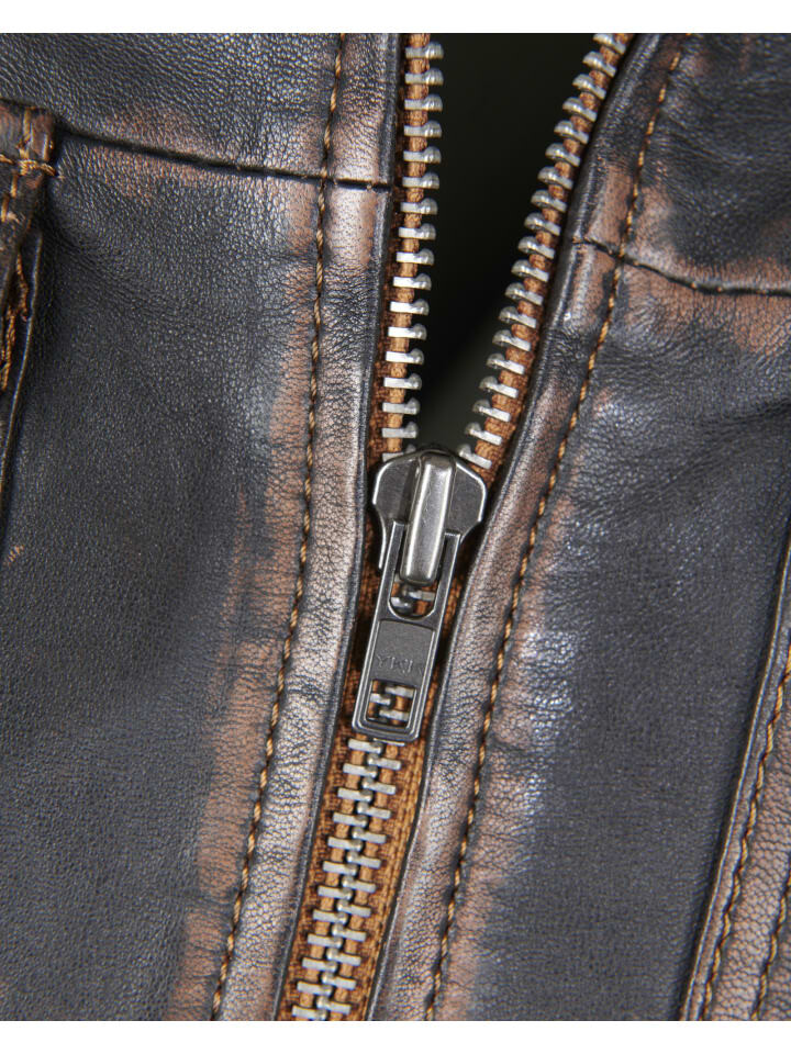 Высококачественные детали, такие как боковые карманы на молнии и декоративные швы, подчеркивают элегантный дизайн. Мягкая, но прочная куртка застегивается на молнию и пряжку на воротнике рубашки.