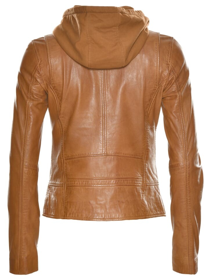 Стильная кожаная куртка от модного бренда JCC. Куртка имеет спортивный крой и удобна в носке благодаря мягкой внутренней подкладке. Есть два боковых кармана на молнии. Капюшон из хлопка снимается на молнии. Имеет шнурок, удерживающий ее на месте.