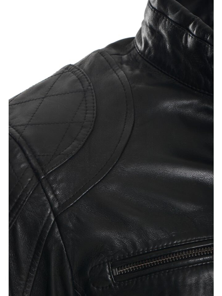 Высококачественные детали, такие как боковые карманы на молнии и нагрудные карманы, подчеркивают элегантный дизайн. Мягкая кожаная куртка застегивается на прямую молнию и имеет два внутренних кармана.
