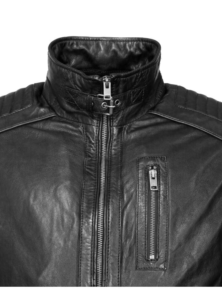 Эту кожаную куртку – мечта носить. Имеются два боковых кармана на молнии и два внутренних кармана, включая вертикальный нагрудный карман на молнии. Пряжка на воротнике рубашки в сочетании с аккуратно обработанными декоративными швами, строчкой в области плеч и кнопками на манжетах создают красивый общий образ. Застегивается на прямую молнию и имеет прямой крой.
