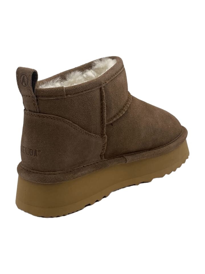 Зимние ботинки от Axelda Footwear. Кожаный верх идеально подходит для универсальных комбинаций нарядов. Внутренний материал из овечьей шерсти/меха и прочная пластиковая подошва завершают ботильоны.