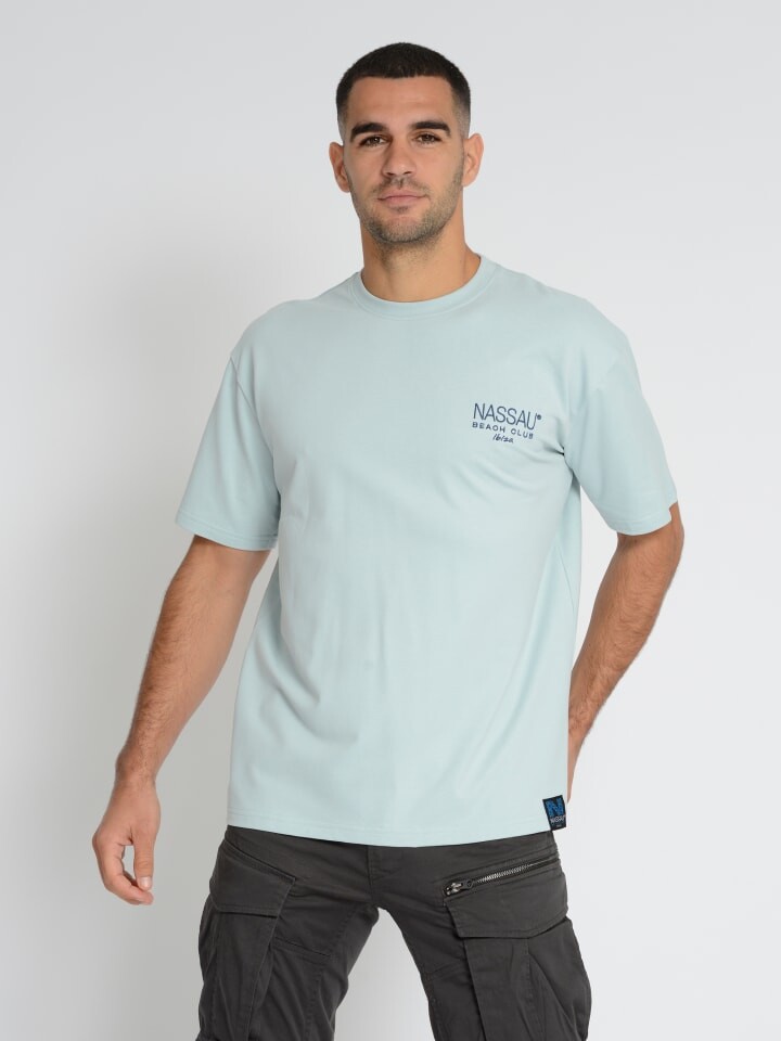 Футболка Nassau Beach сочетает в себе стильные детали и высочайший комфорт. Вышитая надпись на груди и принт на спине привлекают к себе внимание. Мягкая, дышащая ткань обеспечивает удобную посадку, а классический крой универсален. Идеально подходит для непринужденного образа для отдыха - идеально подходит для всех, кто ценит качество и изысканные детали дизайна.