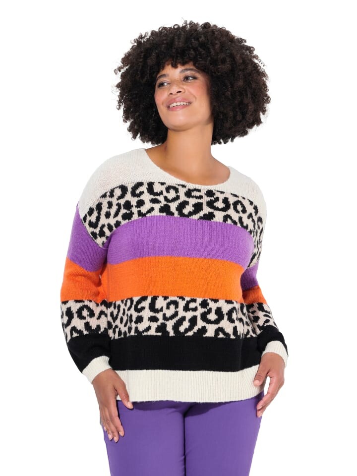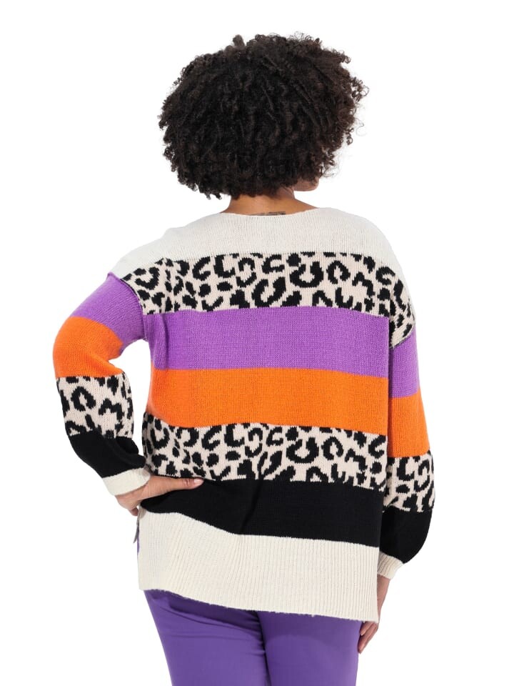Пуловер оверсайз из мягкой тонкой вязки с блочными полосками и металлизированным эффектом. Круглая горловина, длинные рукава, ребристые манжеты. Низ с разрезами по бокам и удлинение сзади примерно на 5 см. Внешний материал: 100 % полиакрил.