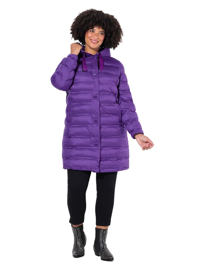 Стеганое пальто прямого кроя с капюшоном и неоновыми лентами. Застежка на кнопки, 2 кармана, длинные рукава, полностью на подкладке. Внешний материал: 100 % полиэстер. Подкладка: 100 % полиэстер.