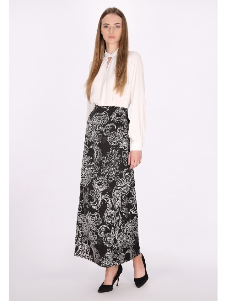 Эта юбка струящегося свободного силуэта украшена замысловатым пейсли или цветочным узором. Гладкая текстура и легкая ткань обеспечивают изящную драпировку от талии до середины икры или до щиколотки. Благодаря широкому краю и потайной застежке, создающей бесшовный вид, оно излучает элегантность и стиль.