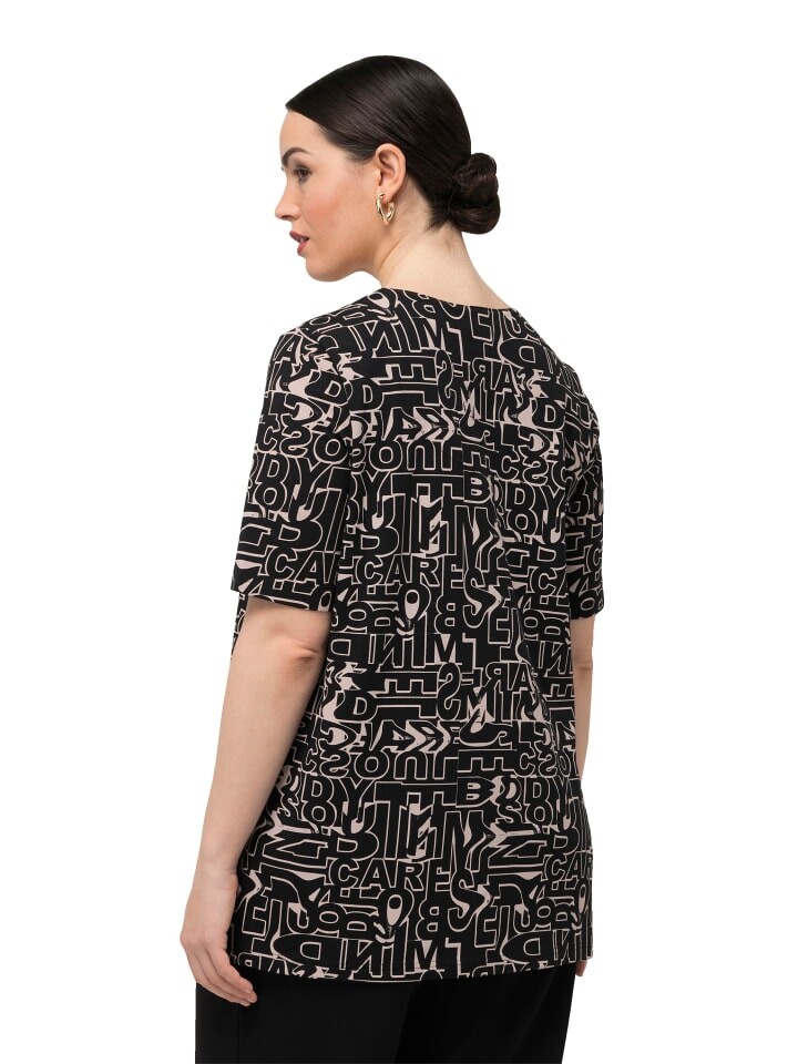 Футболка А-силуэта с буквенным принтом. Вырез туники, рукава до половины. OEKO-TEX.