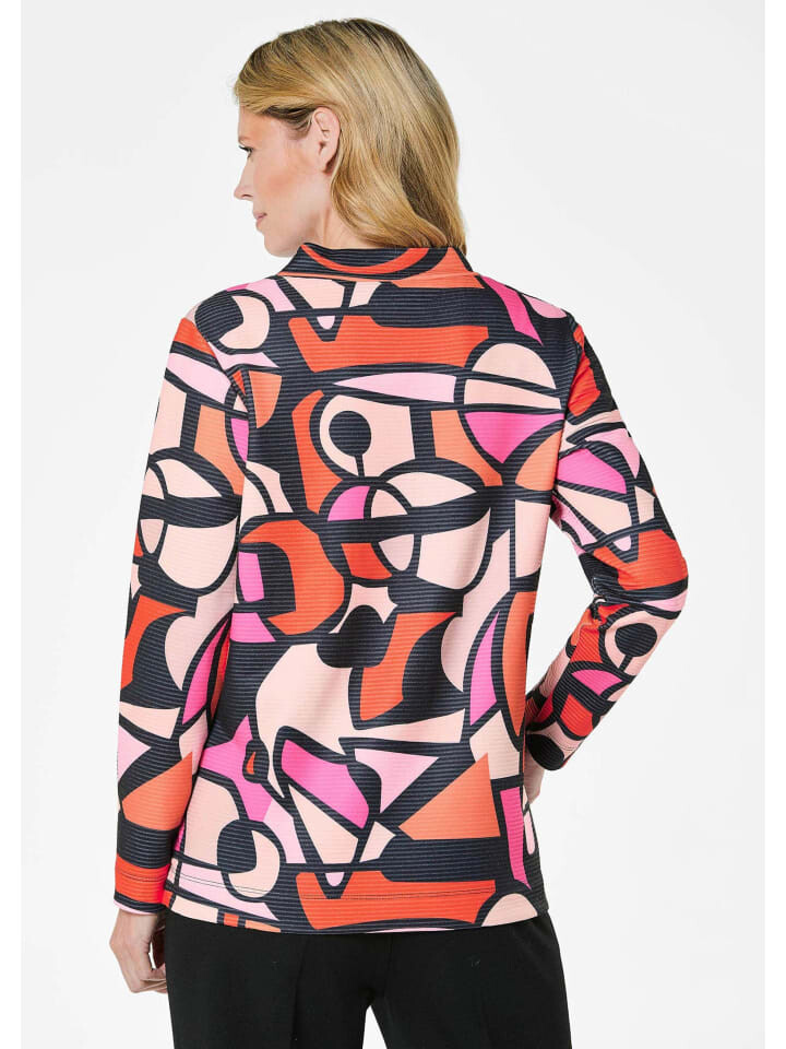 Толстовка с привлекательным принтом по всей поверхности, который можно прекрасно комбинировать. Структурированная поверхность в османском стиле придает современный вид. Модель выполнена с воротником-стойкой, расположенным далеко от шеи, и небольшими разрезами по бокам. Толстовка особенно удобна в ношении благодаря комфортной смеси джерси и вискозы. Длина до бедра, длинный рукав. Размер около 66 см. 46, размер около 62 см. 23.