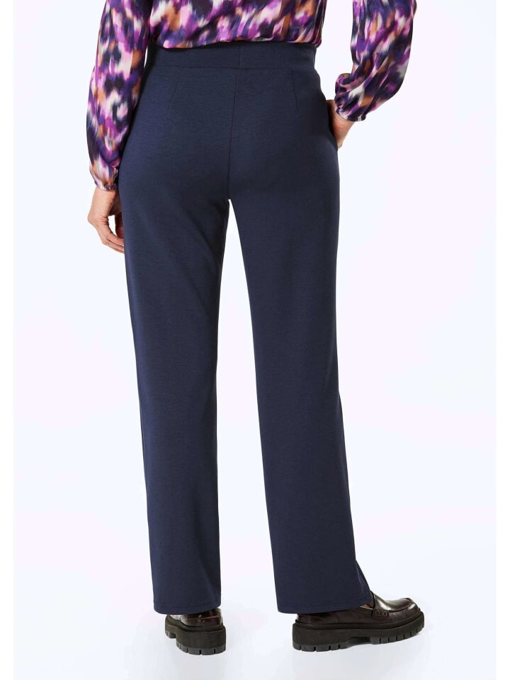 Брюки широкого кроя, которые особенно модны. Широкая штанина имеет вытачки спереди, оказывающие тянущий эффект. Вытачки на спине обеспечивают идеальную посадку. Повседневный образ подчеркивается мягко ниспадающим трикотажем с вискозой и эластаном. Застежка-молния спереди, боковые карманы и плоский пояс без застежки. Ширина по низу около 50 см. Широкая ширина штанин.